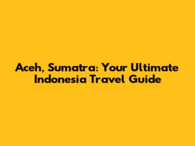 Aceh, Sumatra: Your Ultimate Indonesia Travel Guide