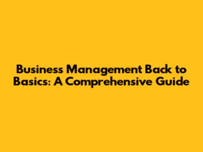Business Management Back To Basics