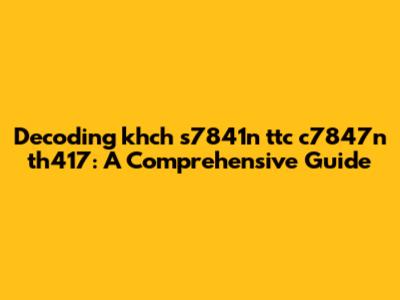 Decoding 'khch S7841n Ttc C7847n Th417': A Comprehensive Guide
