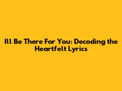 I'll Be There For You Lyrics Meaning: A Deep Dive