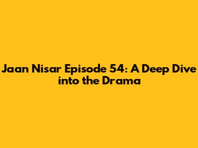 Hey everyone! Are you as hooked on Jaan Nisar as I am? The drama has been keeping us on the edge of our seats, and episode 54 was no exception! In this article, we're going to dive deep into the events of the latest episode, discuss the highlights, and, of course, tell you exactly where you can watch it. So, grab your snacks, settle in, and let's break down everything that went down in Jaan Nisar episode 54. This episode was a rollercoaster of emotions, and if you missed it, you're in for a treat. Or, if you've already seen it, get ready to relive the best moments and maybe catch something you missed the first time around. We'll be looking at the key plot points, character development, and those moments that had us all talking. And for those of you who are new to the show, don't worry! We'll give you a little context to get you up to speed. Let's get started, shall we?