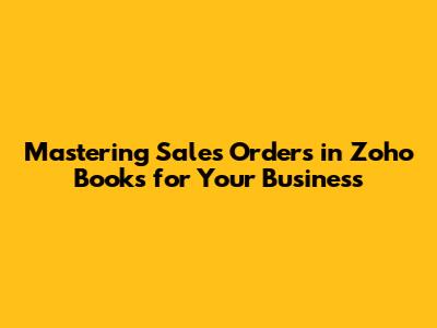 Mastering Sales Orders In Zoho Books For Your Business