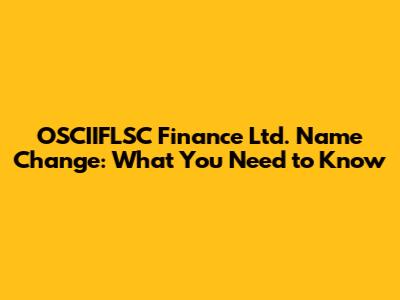 OSCIIFLSC Finance Ltd. Name Change: What You Need To Know