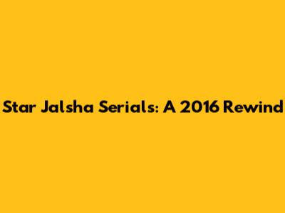 Star Jalsha Serials: A 2016 Rewind