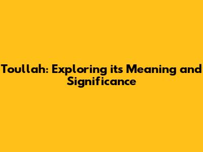Toullah: Exploring Its Meaning And Significance