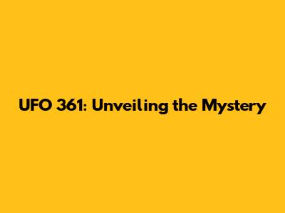 UFO 361: Unveiling The Mystery