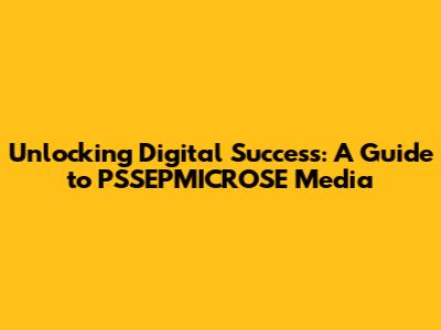 Unlocking Digital Success: A Guide To PSSEPMICROSE Media
