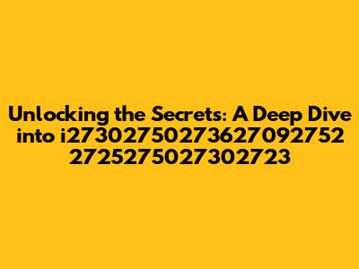 Unlocking The Secrets: A Deep Dive Into I27302750273627092752 2725275027302723